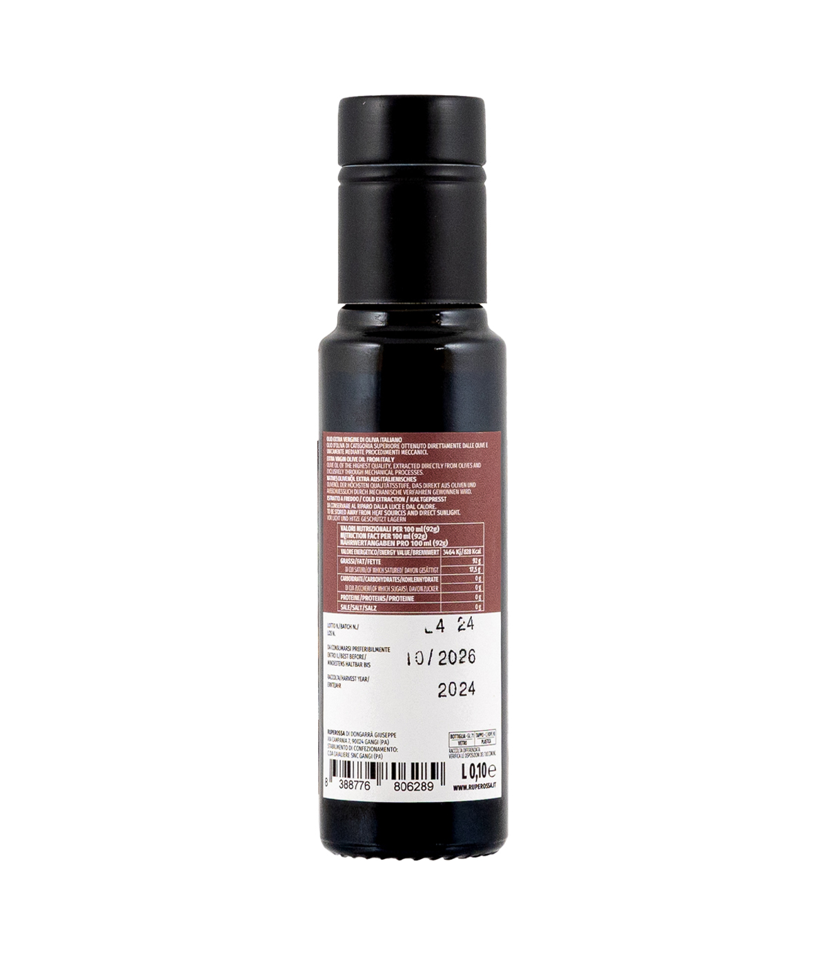 L’Olio Extra Vergine di Oliva Don Fefè Ruperossa è una selezione pregiata ottenuta dalle migliori olive della Sicilia centro-orientale. La raccolta avviene a mano tra il 20 e il 30 ottobre, periodo ideale per ottenere un olio equilibrato e ricco di profumi. Le olive vengono spremute a freddo entro 12 ore dalla raccolta, per preservarne la freschezza e le proprietà organolettiche.